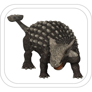 Characteristics: The Ankylosaurus walked on four legs and is one of the largest armoured dinosaurs. It had a wide, triangular, heavily armoured skull, a gigantic tail-club and enormous chunks of bone embedded in its skin. A study in 2009 showed the larger tail-clubs could shatter bones on impact suggesting their tail-club could have been used for physical confrontations. The back legs were longer than the front legs and studies of fossils suggest it had five toes on each foot. It had a horny beak and small, leaf-shaped teeth suitable for eating plants. Palaeontologists have hypothesised its large stomach probably had a fermentation compartment to help digest more resilient vegetation. Consequently, they would have produced large amounts of smelly gas.