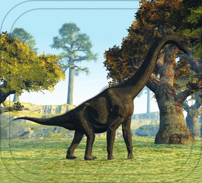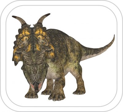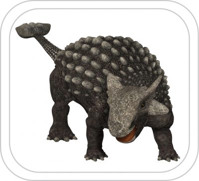Characteristics: The Ankylosaurus walked on four legs and is one of the largest armoured dinosaurs. It had a wide, triangular, heavily armoured skull, a gigantic tail-club and enormous chunks of bone embedded in its skin. A study in 2009 showed the larger tail-clubs could shatter bones on impact suggesting their tail-club could have been used for physical confrontations. The back legs were longer than the front legs and studies of fossils suggest it had five toes on each foot. It had a horny beak and small, leaf-shaped teeth suitable for eating plants. Palaeontologists have hypothesised its large stomach probably had a fermentation compartment to help digest more resilient vegetation. Consequently, they would have produced large amounts of smelly gas.
