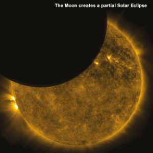 By a bizarre galactic coincidence, the Moon and the Sun appear to be almost exactly the same size in the sky from Earth. The Sun is about 400 times further away from the Earth than the Moon but the Sun’s diameter is about 400 times bigger than the Moon. This phenomenon allows us to see a solar eclipse from Earth. A solar eclipse happens when the Moon passes between the Sun and the Earth and the Moon totally or partially covers the Sun. This can only happen at a New Moon and can only be viewed at certain places on Earth where the darkest part of the Moon’s shadow, or umbra, falls