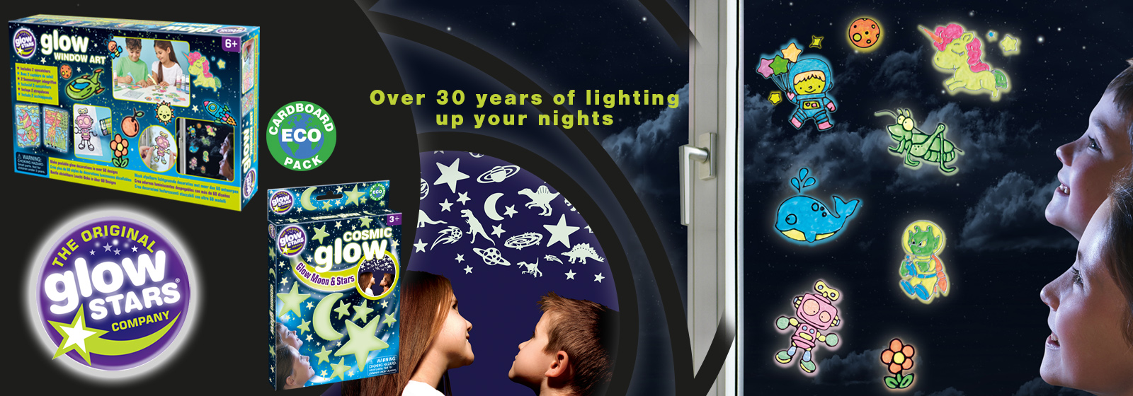 The Original Glowstars Company has been lighting up our nights for more than 30 years with the original paper stickers that first brought glow-in-the-dark wall décor to kids bedrooms. Now The Original Glowstars Company brings not just the original paper Glowstars but a whole array of glow-in-the-dark items to make your home a fun, educational, “glowing” place to be.