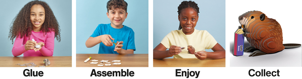 Build your own 3D models with this unique collectable. Beautifully detailed, yet simplified, miniature figures with cuteness added in! Kids will collect and treasure them.