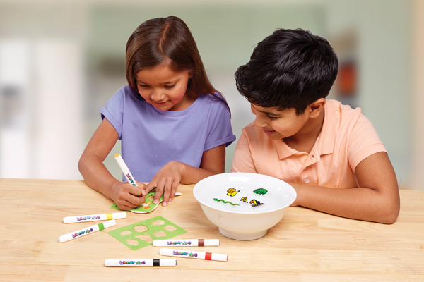 Includes 6 assorted magical water markers, 2 stencil sheets & ceramic spoon